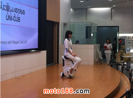 本田青山總部的工作人員現場演示如何操作本田最新獨輪騎行器