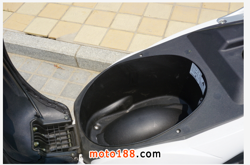 4.儲物空間明顯不足,前儲物箱“形同虛設”僅僅能放付手套或面巾紙,后座桶放3/4頭盔都勉勉強強就別說全盔了(怪不得此車在歐洲尾箱是標配)。