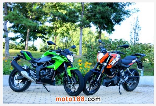 最近以來大貿(mào)摩托車不是集體價格“跳水”就是推出親民價格的車款,現(xiàn)在連“入門”級別的車型也開始介入到價格“親民戰(zhàn)”中,其中有兩款車型最為靠譜。首先是因為它們降價后的價格較為接近,KTM 200 DUKE原價35800元降價后為29800元(降6000元),川崎Z250SL原價37800元降價后為28900元(降8900元),ABS版39800元降價后為31000元(降8800元);其次是因為它們性能特征也非常相似都透著一股“野”。兩款車型價格下降如此之多,已經(jīng)直接威脅到“國民車”GW250系列(這是瞎子都看得出來的事),所以本期“培”你解惑的主角就是:“野性”與“野心”的對決-KTM 200 DUKE和川崎Z250SL(ABS)。
