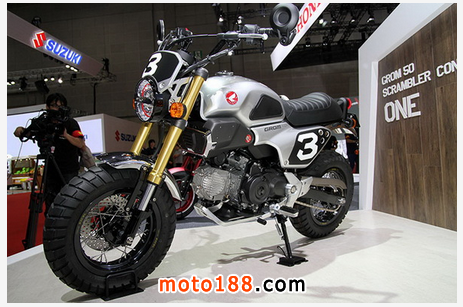 ●HONDA MSX的日本版稱為GROM,并且有50cc版本,而其他地區(qū)及國家主要引入MSX 125,圖中的SCRAMBLER Concept One,擁有較復古設計。