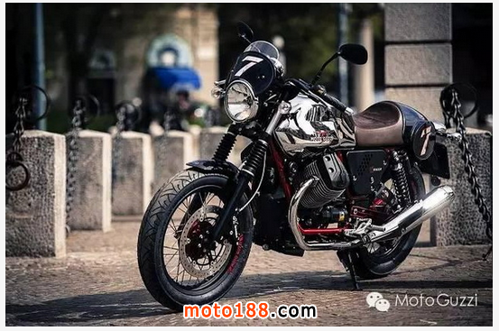橫置V型90度夾角發動機;744cc排量,五速變速箱及軸傳動;黑色發動機蓋與車體紅色涂裝對比鮮明;裸露的機件更能彰顯機械魅力;雙側閃亮排氣管對稱又耀眼;稍微前傾的騎行坐姿;向70年代“Cafe Racer”致敬。
