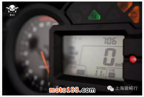 輕推Versys1000的寬大車把,輕盈異常,完全不似一輛超過250公斤的公升級大車。坐高設定為適合亞洲人士的840MM,175CM身高的騎手便能雙腳著地。試著用腳尖踮地退車,竟然異常輕松,令人親和感倍生。視野良好,坐姿直立而放松。市區的低轉速區行駛,完全沒有笨重之感,轉向輕盈,指向準確。全新設計儀表,除了帶來可視性良好的模擬式轉速表和LCD車速表,還增設了油量、里程表、時鐘、雙里程表、瞬時/平均油耗、外部氣溫表和經濟行駛指標等,信息豐富而實用。
