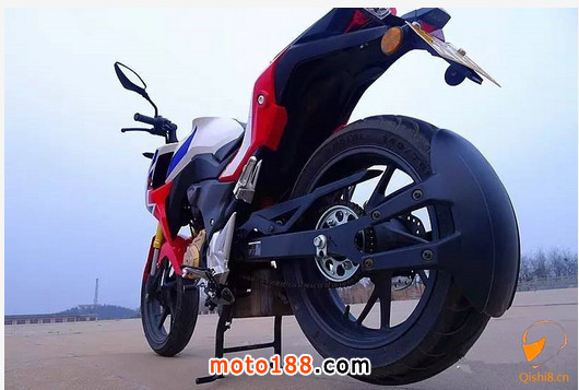 全數(shù)字顯示的集成儀表也是此車的一大亮點是從CB500F上直接“移植”過來的,這等頗高的配置甚至在進口大貿(mào)的CB300F上都沒有配置(可想本田已經(jīng)在看重國內(nèi)市場)顯示醒目、直觀、沒有多余的顯示,唯一遺憾的就是沒有配備檔位顯示,這可能對新手來說上手稍微有些吃力了。 細節(jié)部分,在儀表的兩側(cè)本田也很細心的采用了仿碳纖維材質(zhì)的外殼,細節(jié)上很讓人滿意! 采用分離式車把的街車著實不多而CBF190R算一個,騎士可以通過調(diào)節(jié)車把兩端的螺栓來調(diào)節(jié)適合自己的車把高度和方向。正中心的Honda的logo恰到好處的點綴,配合車把比較細膩的做工,給騎乘者們帶來非常不錯的視覺感官體驗。 全LED的概念在190上得到了很好的體現(xiàn)就連車把的按鈕指示燈也不例外,它也是現(xiàn)目前唯一的國產(chǎn)車上配備此功能的車型。尤其是在夜晚騎行時儀表盤的背景燈和車把背景燈相呼應(yīng),整車逼格提升N個檔次。各功能的大按鍵讓你使用起來也得心應(yīng)手,分布合理! 油箱造型絕對算得上驚艷,棱角分明的油箱向下延伸直接和前翼板融為一體后現(xiàn)代感十足!同樣也得騎士充分的腿部空間。為了美觀Honda的那位美女設(shè)計師還為它在油箱兩邊設(shè)計了假通風(fēng)口,至少在美觀的角度上來說這沒錯,您說沒錯吧?個人感覺唯一的缺點就是當(dāng)你真的跨上這臺車時,你總會覺著油箱整體著實小了一號,不過這會體現(xiàn)出他的另一面——靈活 一體式的車座采用紅色的縫線鏈接,運功感十足!主駕駛座和副座較高的落差似的這臺車的“屁股”能夠高高翹起顯得整車非常的戰(zhàn)斗。車座的乘坐舒適度適中,并沒有像藍寶龍300那種坐下去就陷下去的感覺,但是也沒有那種像防賽那樣硬邦邦的感覺,更夠很好的襯托我想這就是最符合街車定義的吧 最后來到車尾燈這,我們看到的依然是各種的LED,不過這塊尾燈上的塑料外殼確實不夠顯檔次,和整車的珍珠漆面外殼很是不搭,在下方設(shè)有隱藏式的把手,方便一旦發(fā)生意外倒車扶車使用。