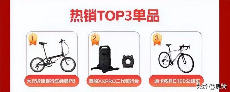 其中,最熱銷單品是大行經(jīng)典折疊車P8,折疊車界的“常青樹(shù)”,無(wú)數(shù)騎行愛(ài)好者的“啟蒙車”名不虛傳。第二是智騎二代騎行臺(tái),售價(jià)1999買騎行臺(tái)送價(jià)值999的功率計(jì)折扣力度非常誘人。迪卡儂入門神車RC100位居熱銷單品第三。
