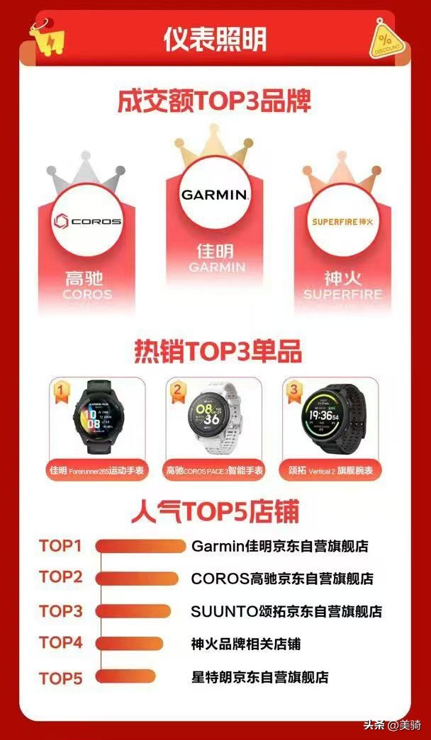 在儀表照明榜單上,自行車碼表老大哥佳明在此位居榜首,雖然主要銷售額并非由碼表貢獻(xiàn)。另外,位居第二的高馳的產(chǎn)品線中也有自行車碼表的一席之地。