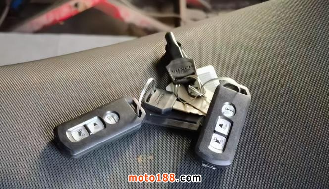 經(jīng)維修站初步檢查也還是打不開。鄧先生因有急事,就讓維修站好好檢查一下,自己騎維修站的另一輛也帶有本田Smart key鑰匙的車去辦事??烧l知維修站拿鑰匙給他后,他又打不開維修站的這臺摩托車車鎖。這就讓維修站的人員開始懷疑了,說你身上是不是有什么東西,鄧先生搜了一下自己的身上說沒什么東西呀,除了有兩個車庫門遙控器。維修人員把他的車庫門遙控器放在另外一個地方,然后讓他拿鑰匙去開鎖,兩臺車都順利的打開了,說明問題就出在車庫門遙控鑰匙上。