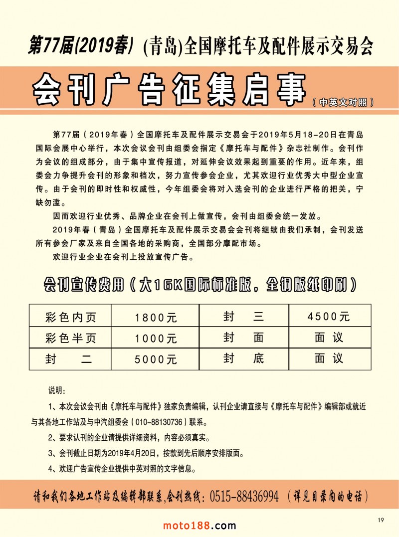 內19 第77屆(2019春)(青島)全國摩托車及配件展示交易會