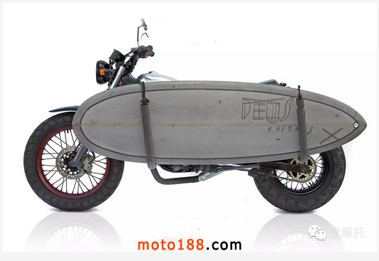 這款摩托車并不算是強壯肌肉型,它是為沖浪人群專門設計的,澳大利亞的陽光沙灘才是它的終點。它的外形在描述著浪花,也是簡潔大方的代名詞,還可以定制貼心的沖浪板支架。